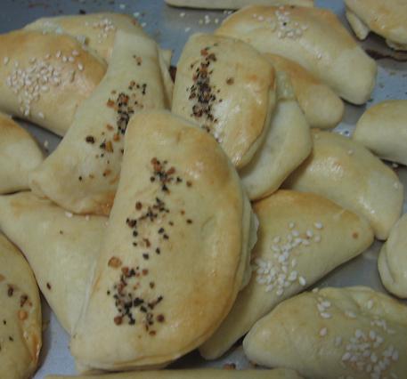 לקחת כדור בצק ולרדד עיגול, להוסיף כף מתערובת הגבינה בחצי העגול