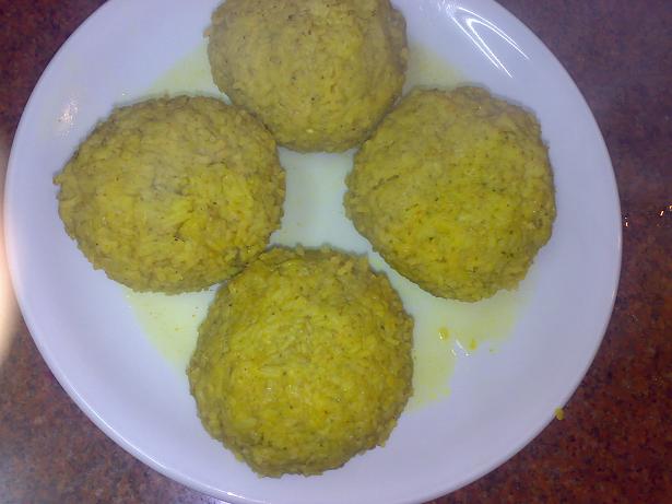 4. הכנת הקובה: לוקחים בכף היד כדור אורז ומשטחים. במרכזו מניחים כדור בשר וסוגרים את השוליים מעל הבשר. יש להחליק מכל הצדדים ותוך כדי החלקה לפחוס מעט את הכדור.