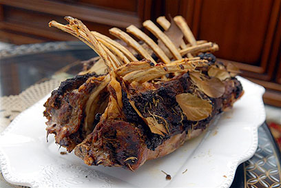 2. שעתיים לפני הצלייה מוציאים את הבשר מהמקרר ומסדרים את הצלעות בצורת "משמר המלכה" (כמו תמונה) בתבנית ששומנה בחצי כוס שמן זית. מחממים תנור ל-250 מעלות.
